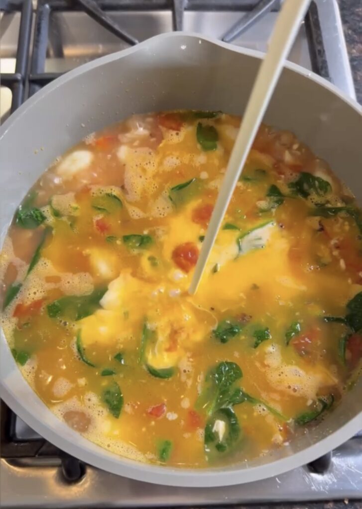 - 2 cups spinach or kale you can tear this up or it will wilt during cooking