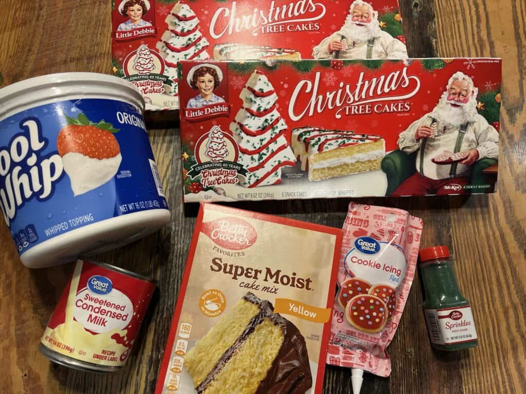 Ingredients for Little Debbie Christmas Tree Poke Cake