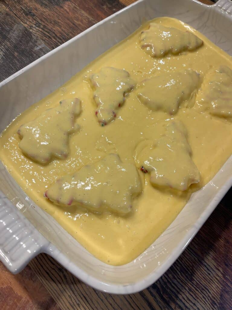 Unwrap & place 7 Little Debbie Christmas Tree Cakes evenly across the bottom of the dish.