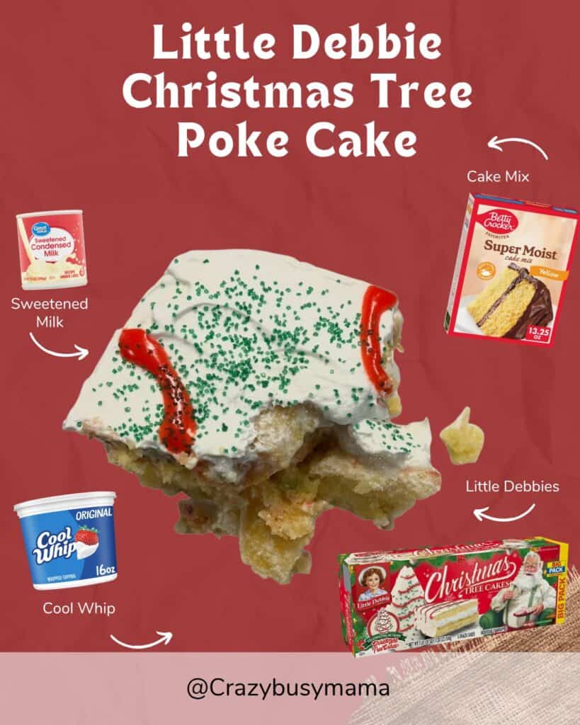 Just a handful of ingredients — nothing fancy — which is exactly what this Little Debbie Christmas Tree Poke Cake is all about: simple, sweet, and stress-free.