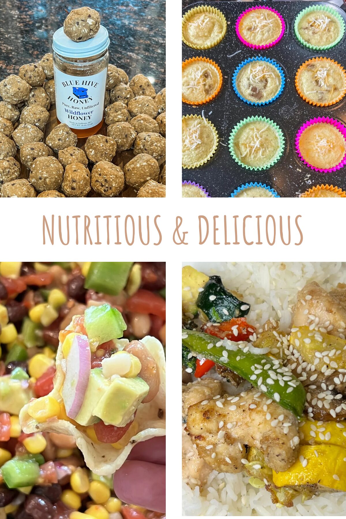 So now that we have covered the bases of Nutrition and motherhood, let get to some recipes that are nutritious and delicious! These recipes will help your whole family get much needed nutrition! From protein packed egg bites & yummy fruit fries to veggie loaded cowboy caviar; this round up has something for everyone and something for every meal!