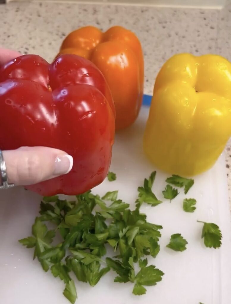 Chop Peppers and Parsley and set aside. Shred cheese and set aside.