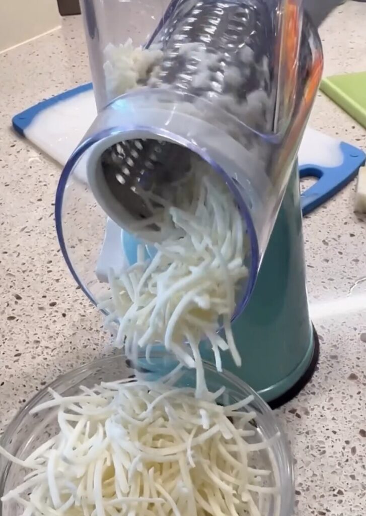 Make sure you check out my Crazy Busy Mama Hack below for chopping peppers, it will blow your mind! Also I love this cheese grater wheel. It makes shredding cheese so simple and is dishwasher safe!