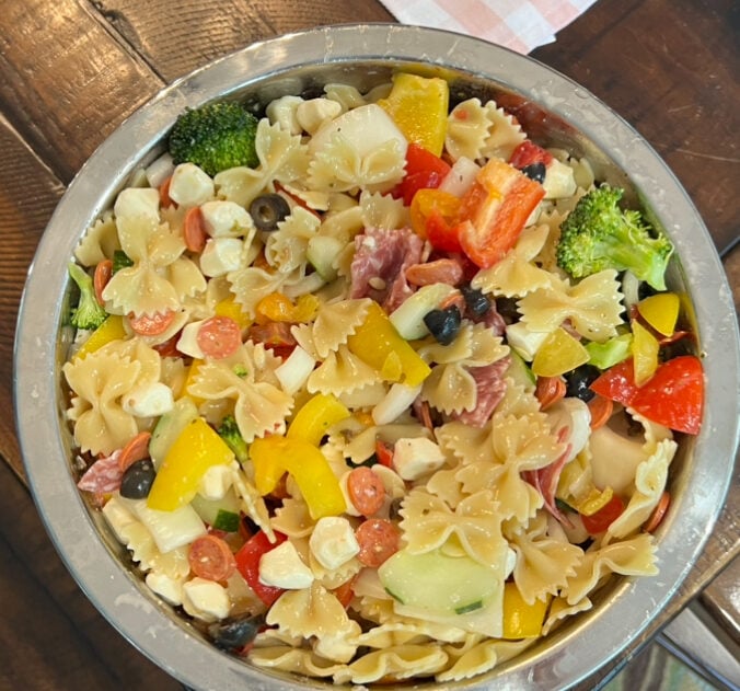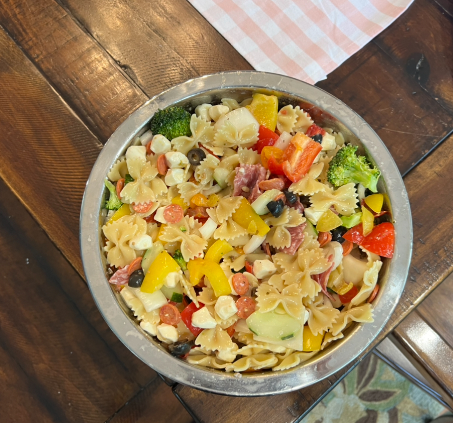 - Allow pasta salad to set up with all ingredients for 2-4 hours or overnight then serve.