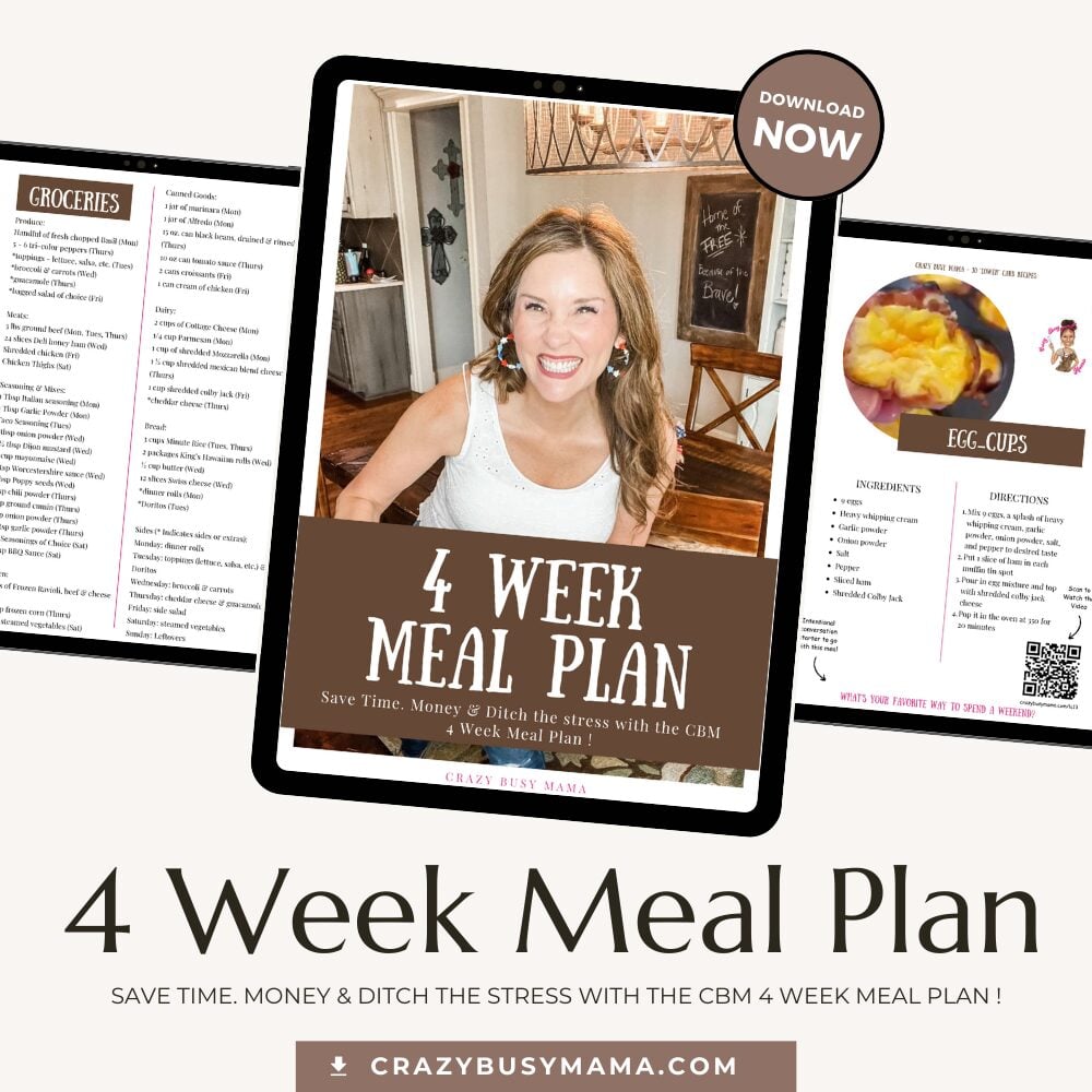 Say hello to your new best friend—the Ultimate 4-Week Meal Plan, crafted just for busy moms like you! This isn’t just any meal plan; it’s your ticket to stress-free dinners and happy, well-fed families.