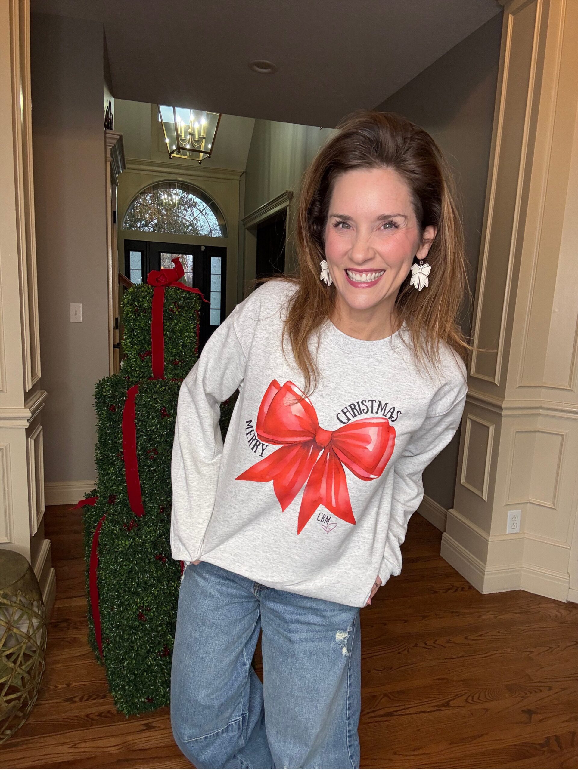 Featuring a bold red bow design, this cozy sweatshirt is perfect for sipping cocoa by the fire, trimming the tree, or spreading holiday joy wherever you go.