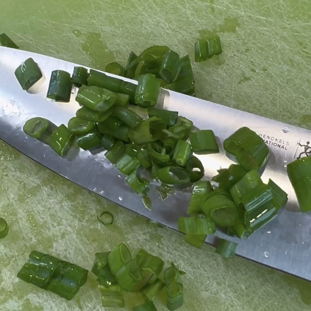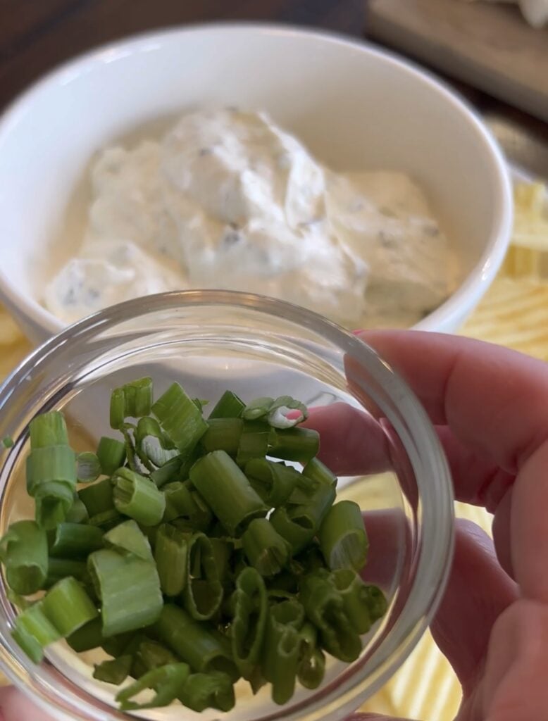 Slice up 3-4 green onions to place on top of dip for a garnish