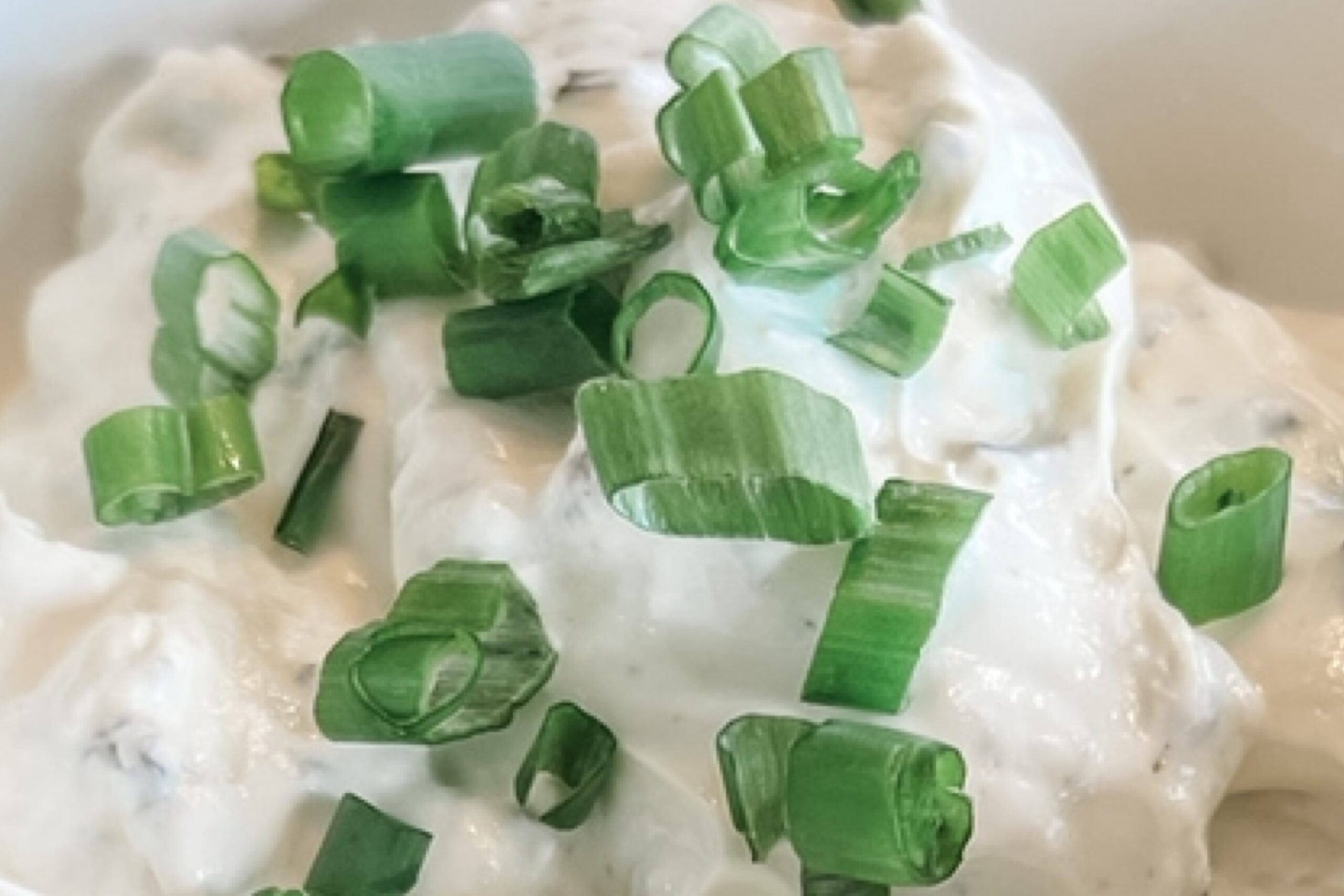 - slice up 3-4 green onions to place on top of dip for a garnish