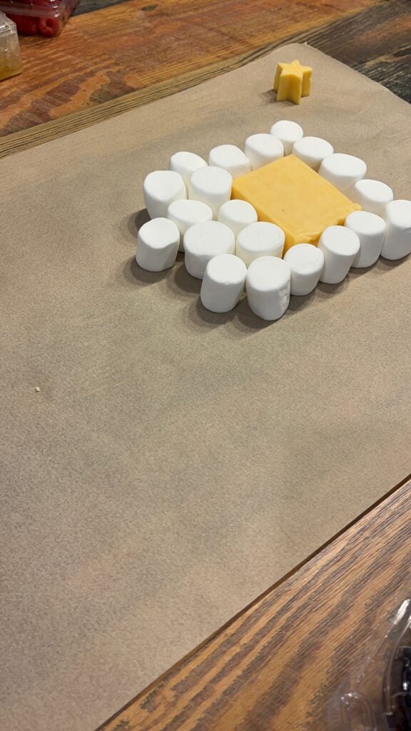 Use your star cookie cutter to punch out a cheese star from the other half. Save it for Santa’s hat topper!