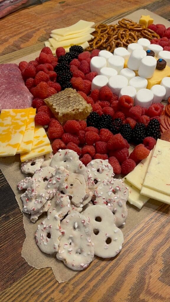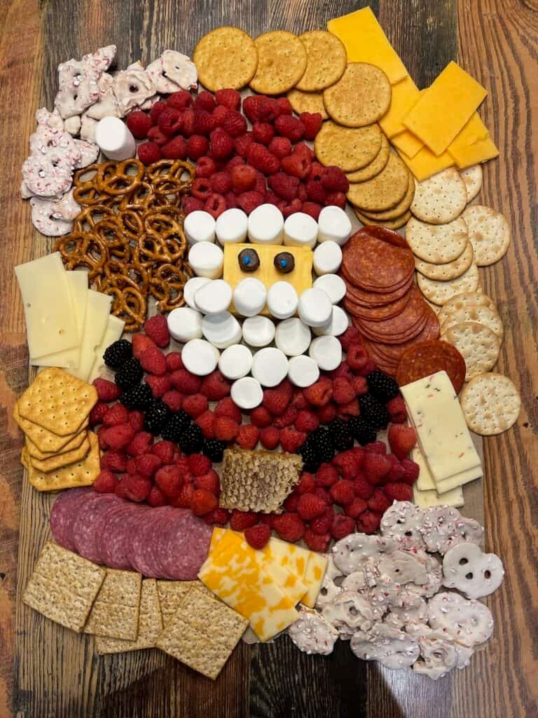 The mixture of colors and textures makes your Santa Charcuterie Board look full, festive, and professional with hardly any effort.