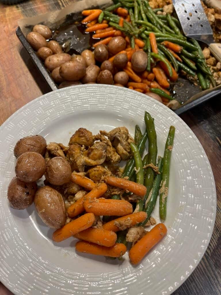 The key to a great Sheet Pan Teriyaki Chicken and Veggies dinner is keeping everything spaced out on the pan so it roasts instead of steams. If needed, use two sheet pans to avoid overcrowding.