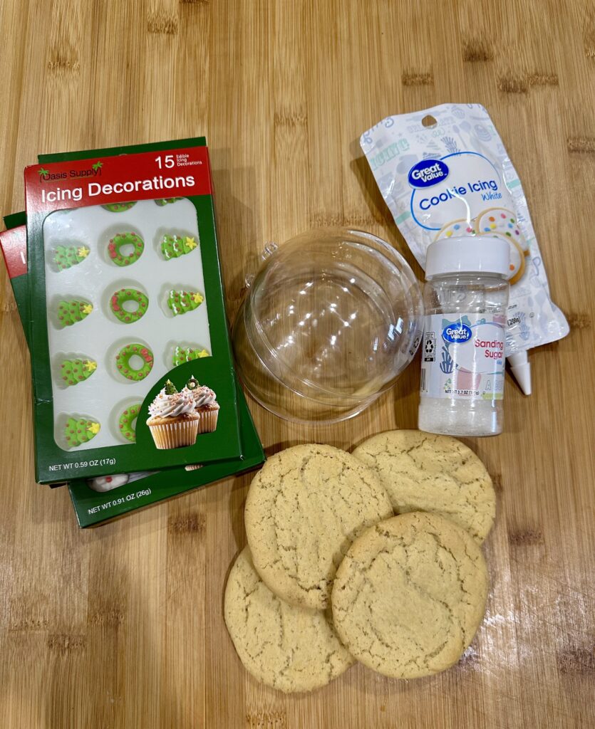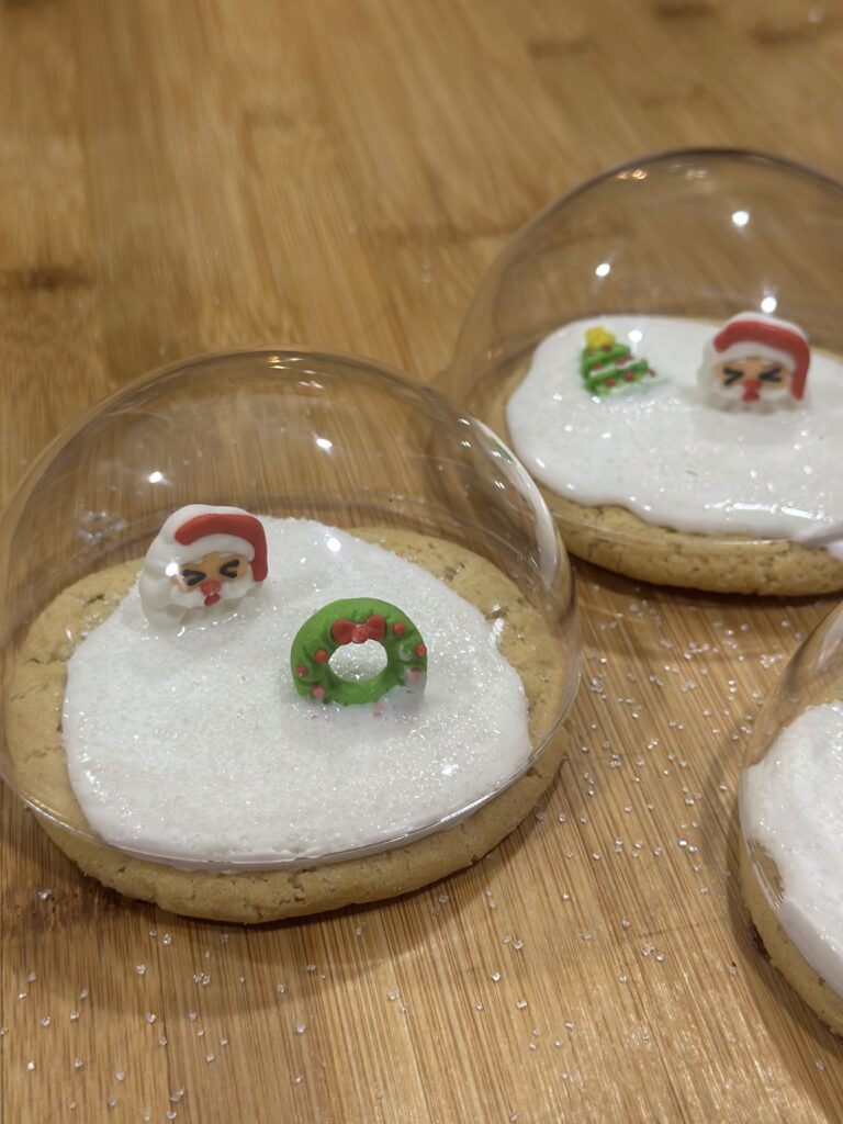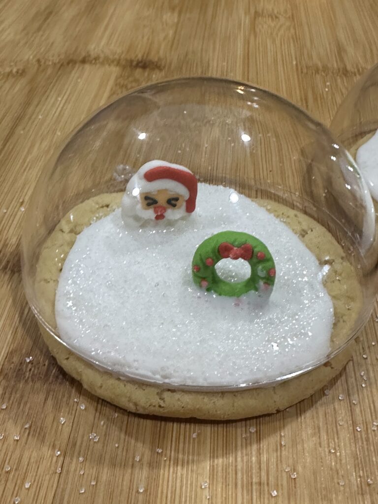 Take half of a clear ornament and gently press it over your cookie, creating the illusion of a snow globe dome. It’s absolutely adorable — and the kids will love seeing their mini winter scenes come to life!