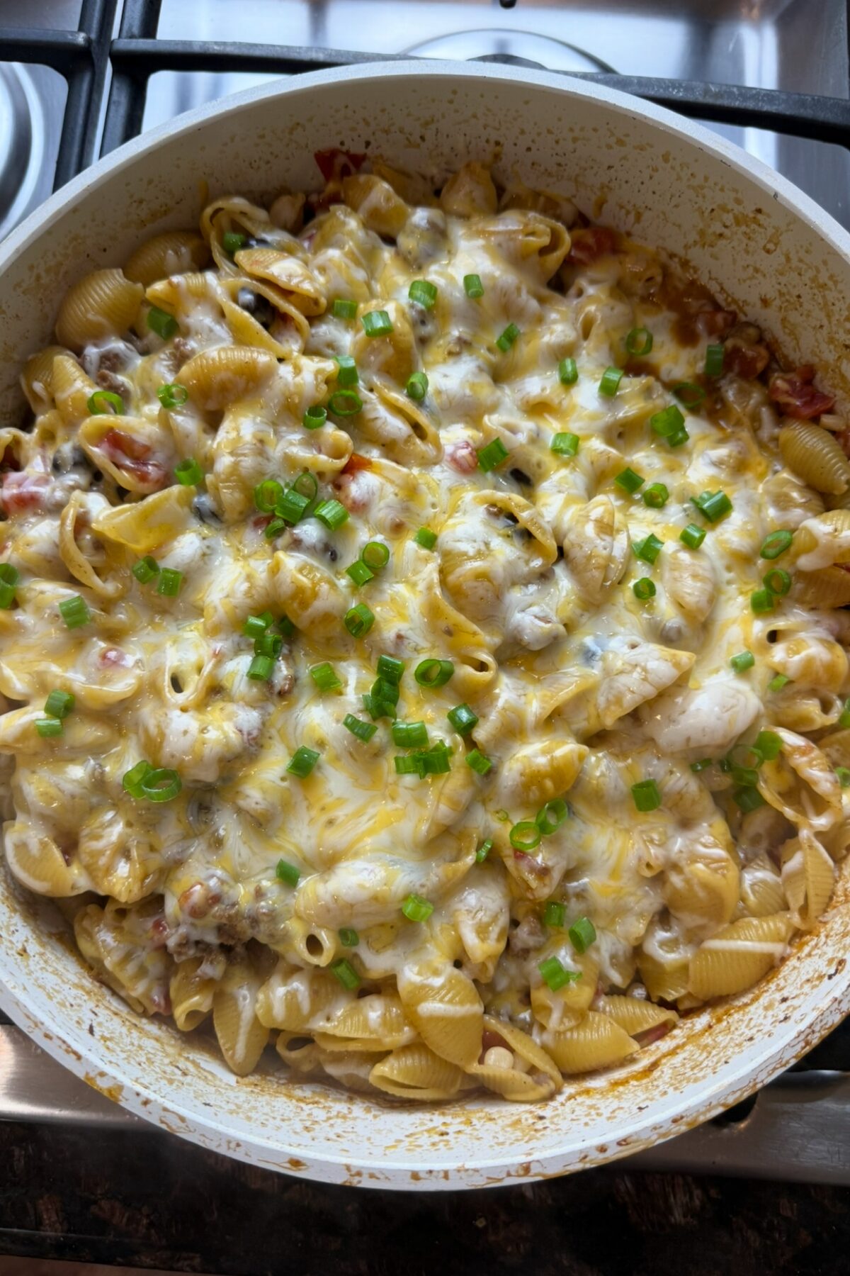 I’m sharing one of my absolute favorite go-to meals: Southwest Taco Pasta Skillet. It’s hearty, flavorful, and on the table in just 15 minutes. Yep, you read that right – 15 minutes from stovetop to table. That’s less time than it takes to run through the drive-thru, and trust me, it’s way more satisfying. I also have a few other recipes similar to this you have to try like this TACO PASTA or even this Southwest Chicken Pasta Bake. Both of these will also be a hit for your family and fit in perfectly with your crazy busy lifestyle.