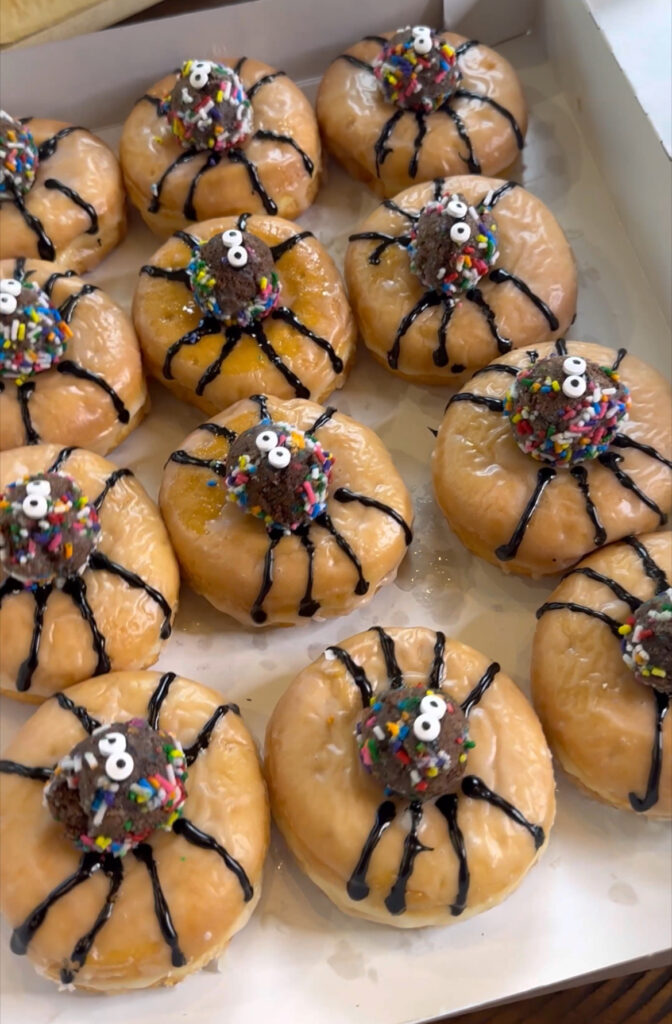 Traveling with these Spider Donuts? If so, Save the extra dishes! If you need these treats to go, you can create the spider donuts within the donut box then once done cover and go.