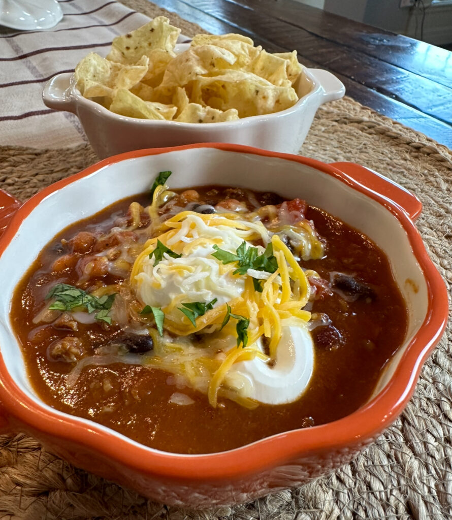 This taco soup/ chili is so so good! It is delicious! My whole family loves it! I entered it into a chili contest at a family event and won! I plan to make it for many more dinners. Thank you for the recipe, Crazy Busy Mama!