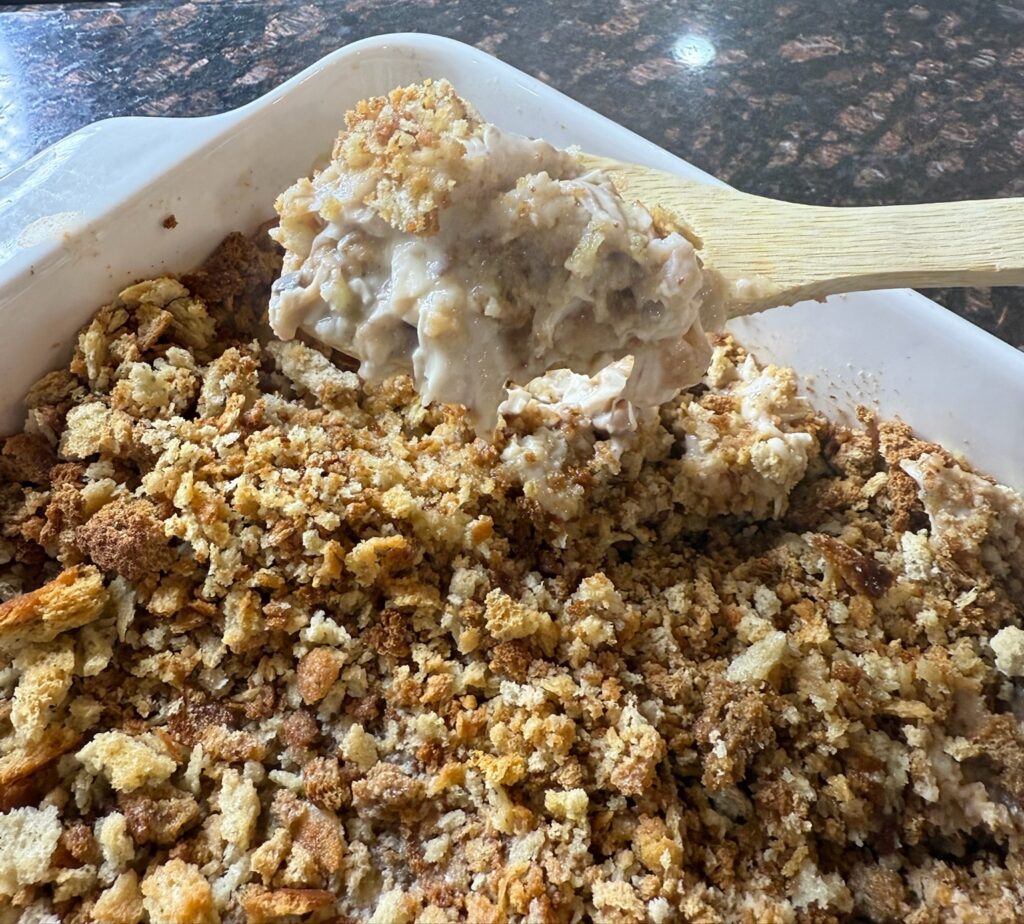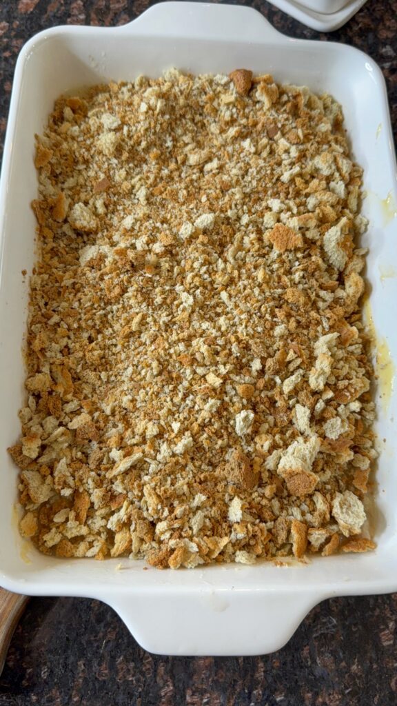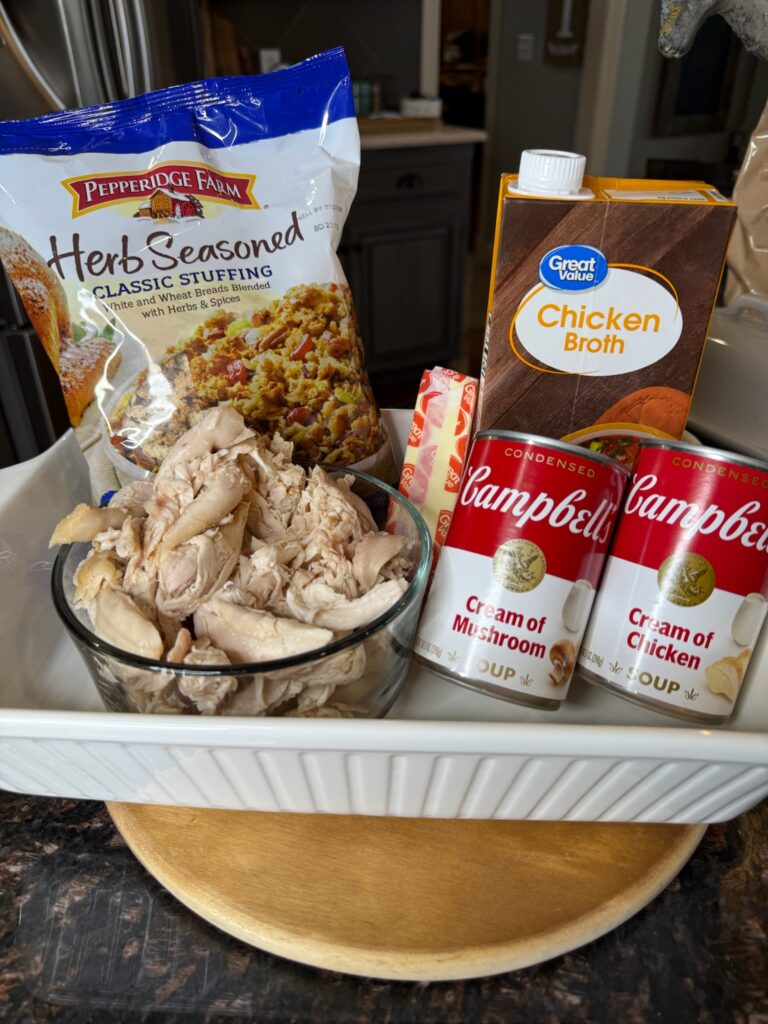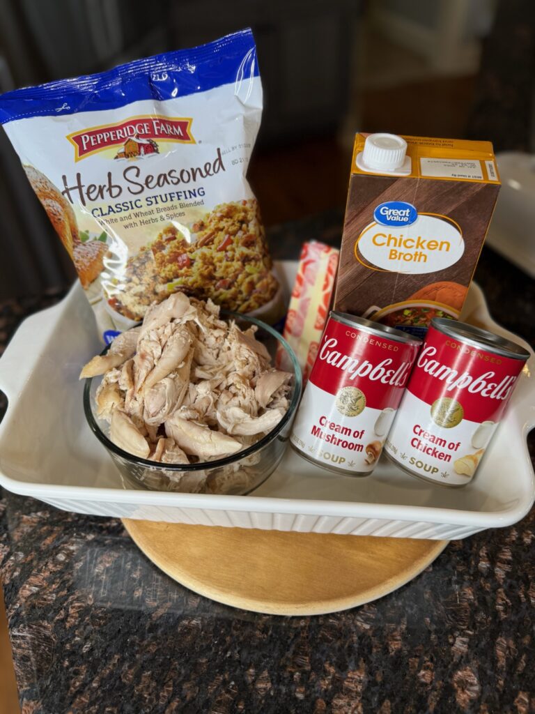 Traveling or not ditch the real casserole dish and try a disposable one! This makes this Thanksgiving Casserole easier clean up.