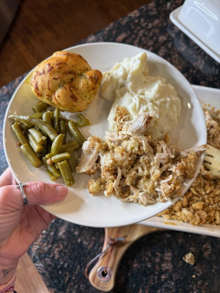 Serve with Mashed potatoes to it's absolutely delicious!  Y’all this is seriously like Thanksgiving dinner in a casserole! It’s so incredible, enjoy! Hope you love it too!