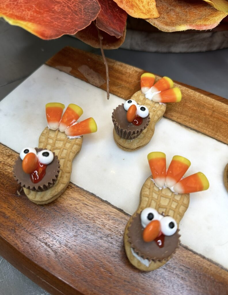 Reese’s pieces – Divide out the orange to create these Turkey Cookies