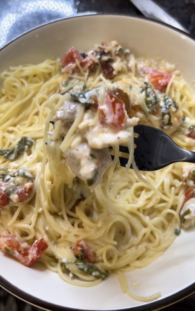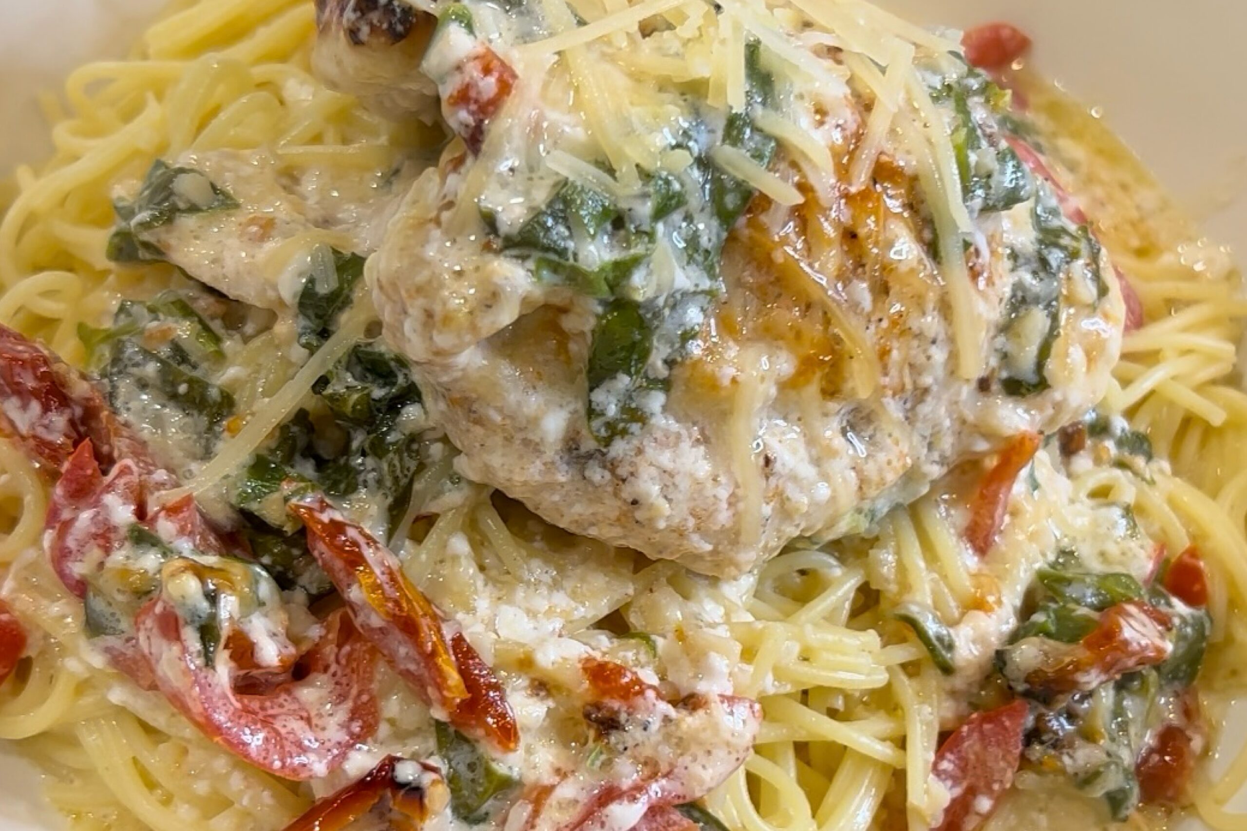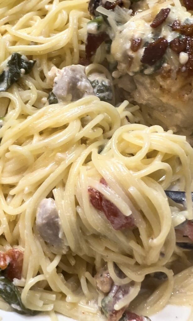 Trying to eat lower carb? Omit the angel hair pasta and just enjoy the Tuscan Chicken as a stand alone main course.