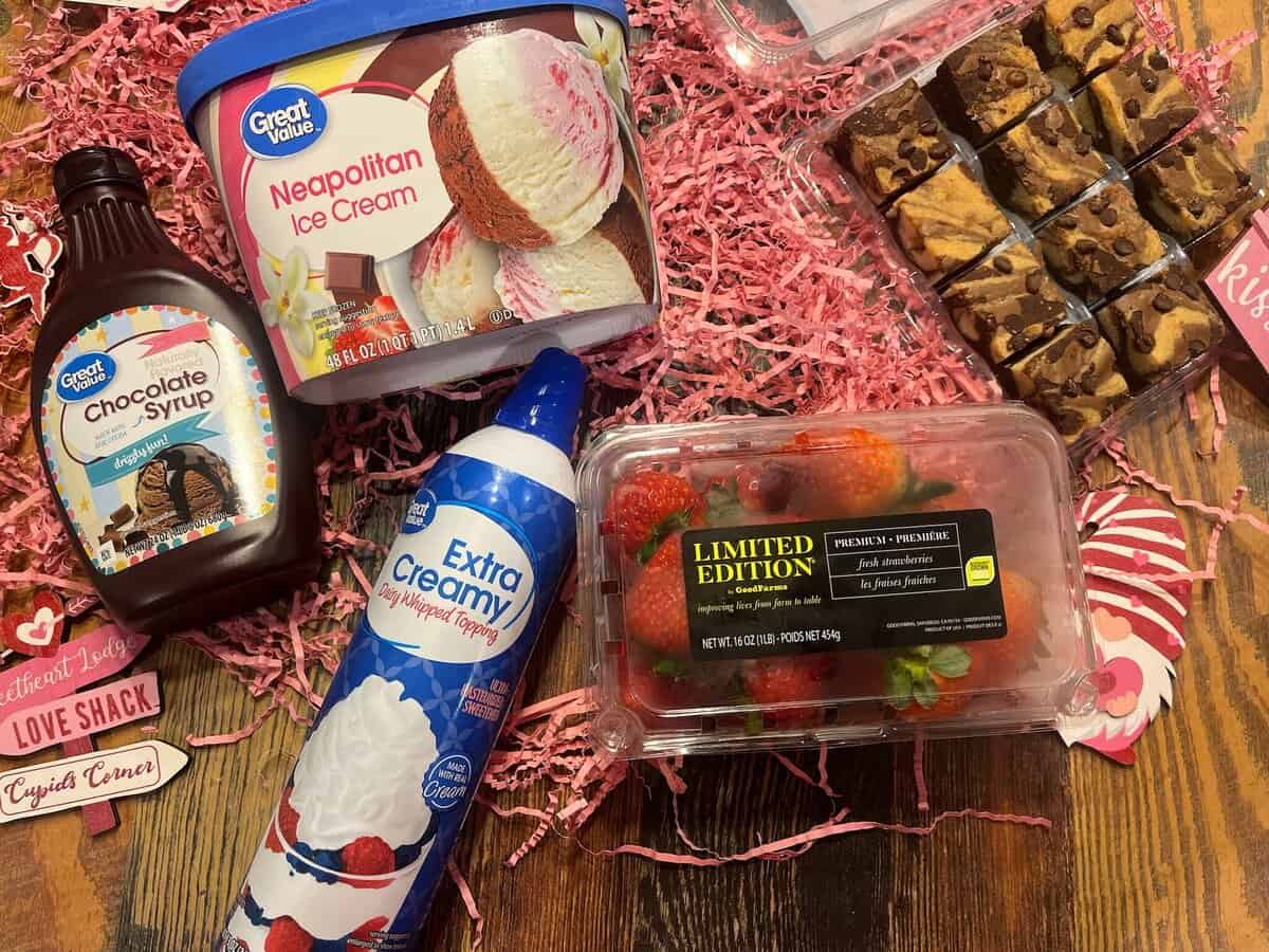 Ingredients for Valentine’s Day Brookie Ice Cream Sundaes