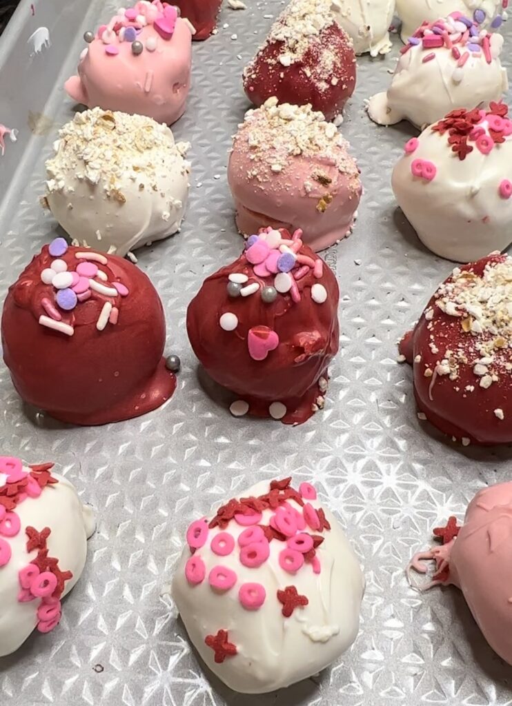 Love this sheet pan set HERE that I am using for these Valentine's Day Cake Pops if you are looking for a new set. This set has 3 sizes perfect for baking and sheet pan dinners for small or big families!