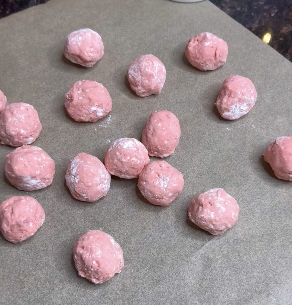 - I like to a little bit of flour and put it on my hands as i am rolling them into balls so they don’t stick to hands.