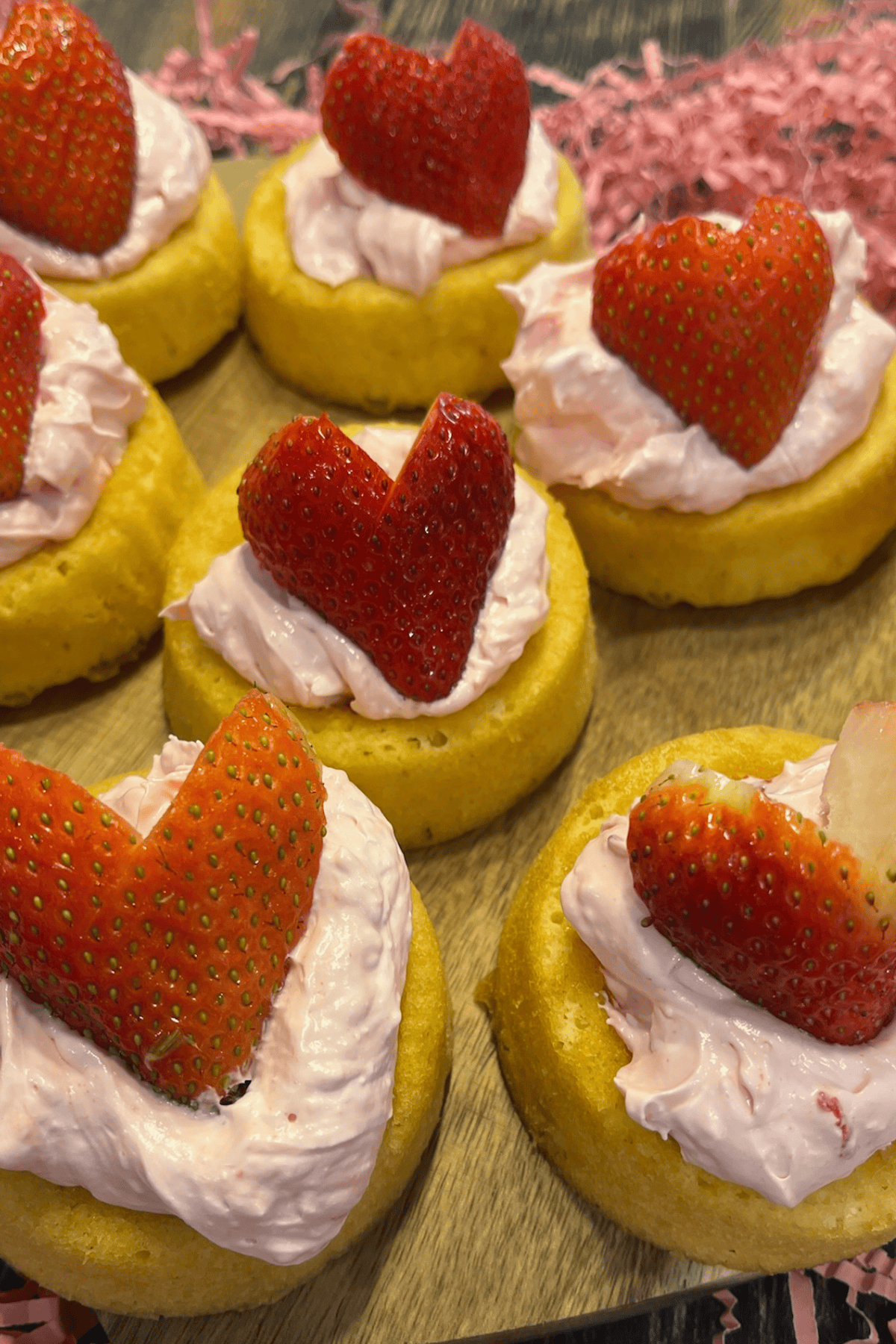 They’re soft, creamy, fruity, and just the right amount of sweet. Made with mini angel food cakes, a fluffy strawberry cream filling, and adorable heart-shaped strawberries on top, these little desserts feel special without being heavy. And best of all? They’re incredibly easy to make — no baking required.
