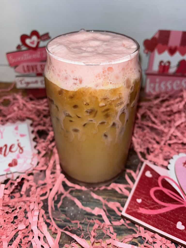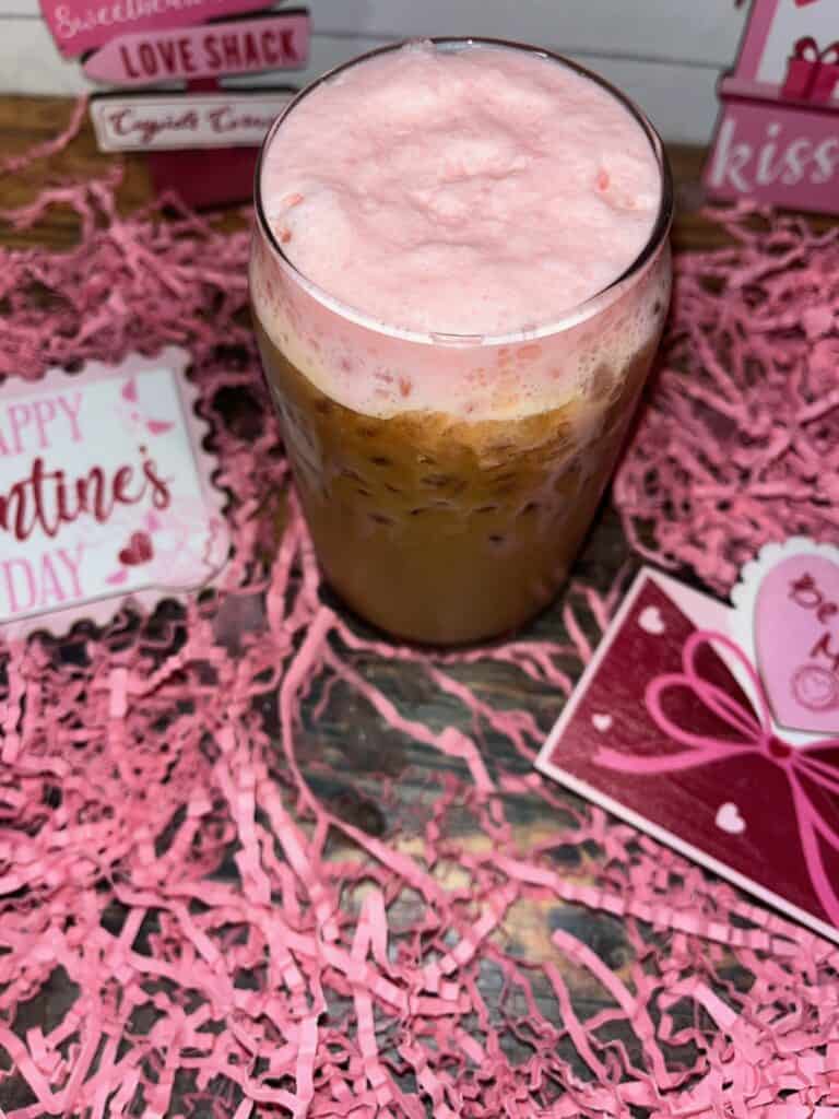 Valentine’s Day Strawberry White Chocolate Iced Latte
