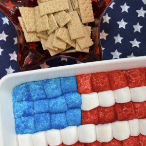 Instead of regular sprinkles I prefer sanding sugar, basically the bigger rock style. It gives it a bolder look.If you are bringing this dish to a BBQ cookout you can also premake this in an aluminum pan and cook over the grill until chocolate melts and marshmallows get slightly toasted. For this S'mores Dip I prefer the marshmallows slightly melted instead of toasted to maintain the white stripe in the flag however feel free to toast the marshmallows to your liking.