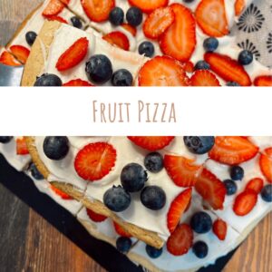 Fruit Pizza is a sweet and refreshing dessert made with a Pillsbury sugar cookie crust, cream cheese frosting, and fresh fruit like strawberries and blueberries. Quick to prepare, colorful to serve, and always a crowd-pleaser, this easy Fruit Pizza recipe is perfect for parties, holidays, or a simple family treat.