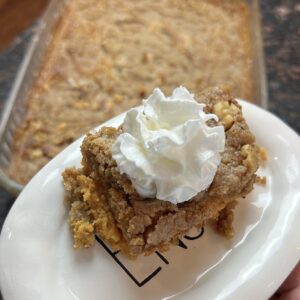 You can also enjoy this Pumpkin Dump Cake warm with vanilla ice cream. I have had it both ways chilled with whip cream and hot with vanilla ice cream. Both are wonderful!