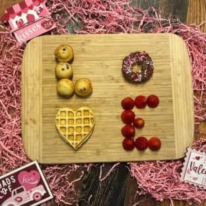 Valentine’s Day Breakfast is a fun, kid-friendly breakfast board that spells LOVE using mini muffins, fruit, Nutella, and a heart-shaped waffle. It’s an easy and festive way to make Valentine’s morning feel extra special at home.